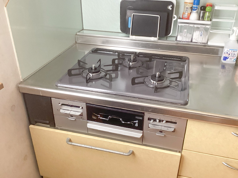 ガスコンロも必要最低限の機能で調理がしやすい物をご提案いたしました。