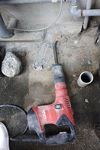 奥行が既存の物より新しい物の方が出てくるので、一部土間をはつりました。